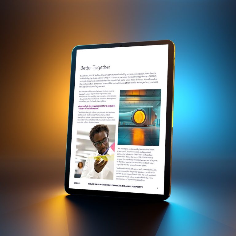 We created a series of ‘thought provokers’ ahead of each event, designed to stimulate discussion, and then subsequently wrote and designed White Papers on core topics – ranging from Hypersonics to Maritime Autonomy.
